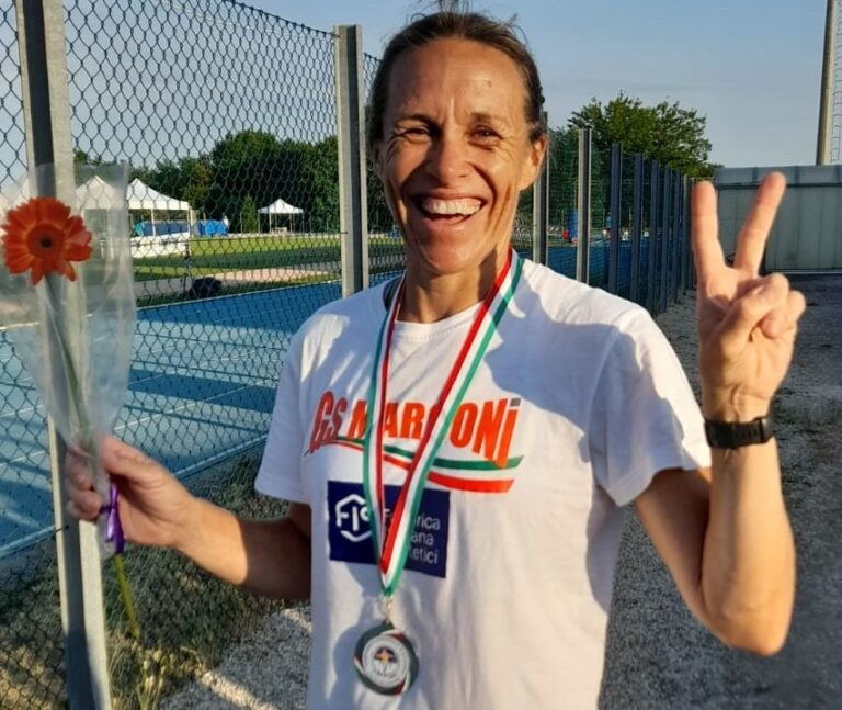 Felicità dopo l’oro di Aida nei 400 hs (foto GS Marconi) Non contenta dell’oro, vince l’argento nei 400 e pure con la 4×400 donne in team con Todesco, Pigato e Torresan Aida Valente davvero superstar. Non smette di stupire la nostra coach, atleta 47enne, che ai Campionati Nazionali Libertas a Casarsa ci ha regalato l’oro … Leggi tutto Aida Valente campionessa italiana Libertas nei “suoi” 400 hs: a 47 anni vola la coach e atleta