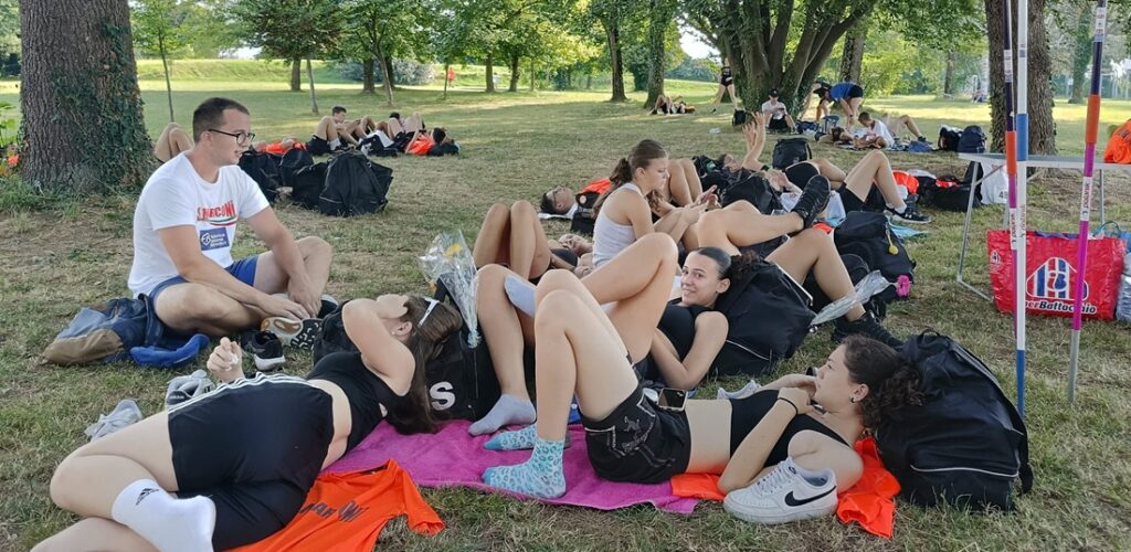 Flash dallo stadio, dall’alto Barreca e Torresan, la 4×400 donne, il “campus” del relax in attesa delle gare (foto GS Marconi)